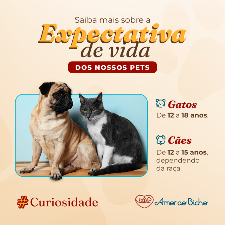 Gatos têm uma expectativa de vida de 12 a 18 anos, e cães de 12 a 15 anos, dependendo da raça! ✨